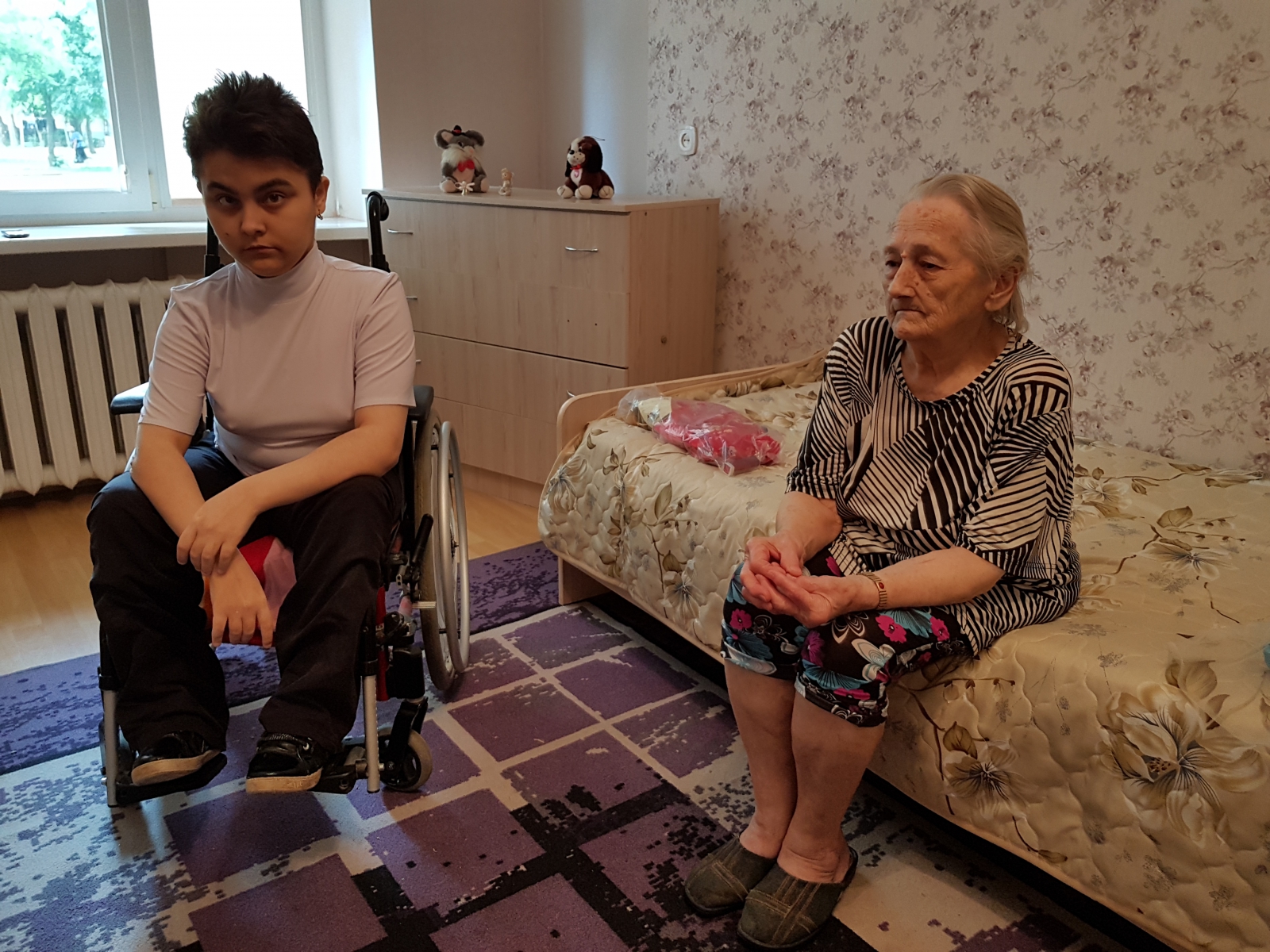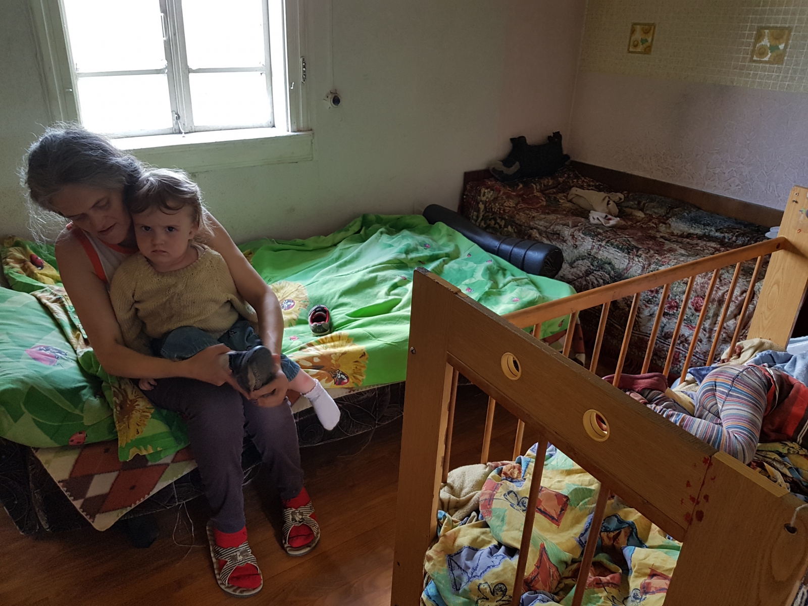 Bis vor wenigen Monaten konnte Viktoria zeitweise zumindest noch im Rollstuhl sitzen, ohne aber die Umwelt wirklich wahrzunehmen. Sie konnte wenigstens noch an das offene Fenster im 4. Stock gefahren werden. Das ist jetzt auch nicht mehr möglich. Weil ihre Großmutter nicht mehr in der Lage ist, sie in den Rollstuhl zu heben, ist sie auf eine „Liegestatt“ fast ebenerdig rund um die Uhr angewiesen.